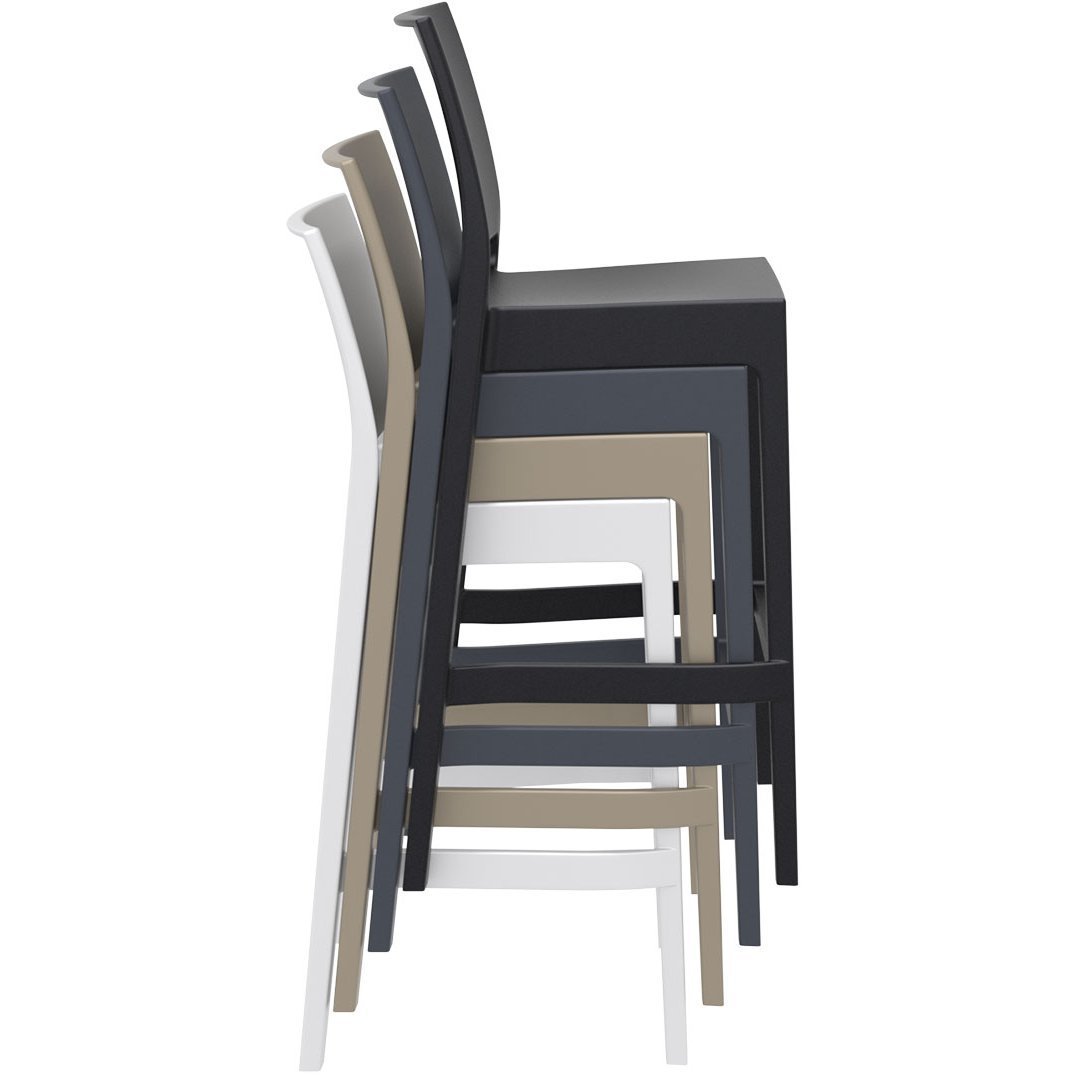 Židle MAYA BAR je vyrobena z kvalitního polypropylenu vyztuženého skleněnými vlákny, který zaručuje pevnost a dlouhou životnost. Moderní technologie výroby mu dodává čistý design v neutrálních barevných tónech. Židle je vhodná pro použití v interiéru i exteriéru.