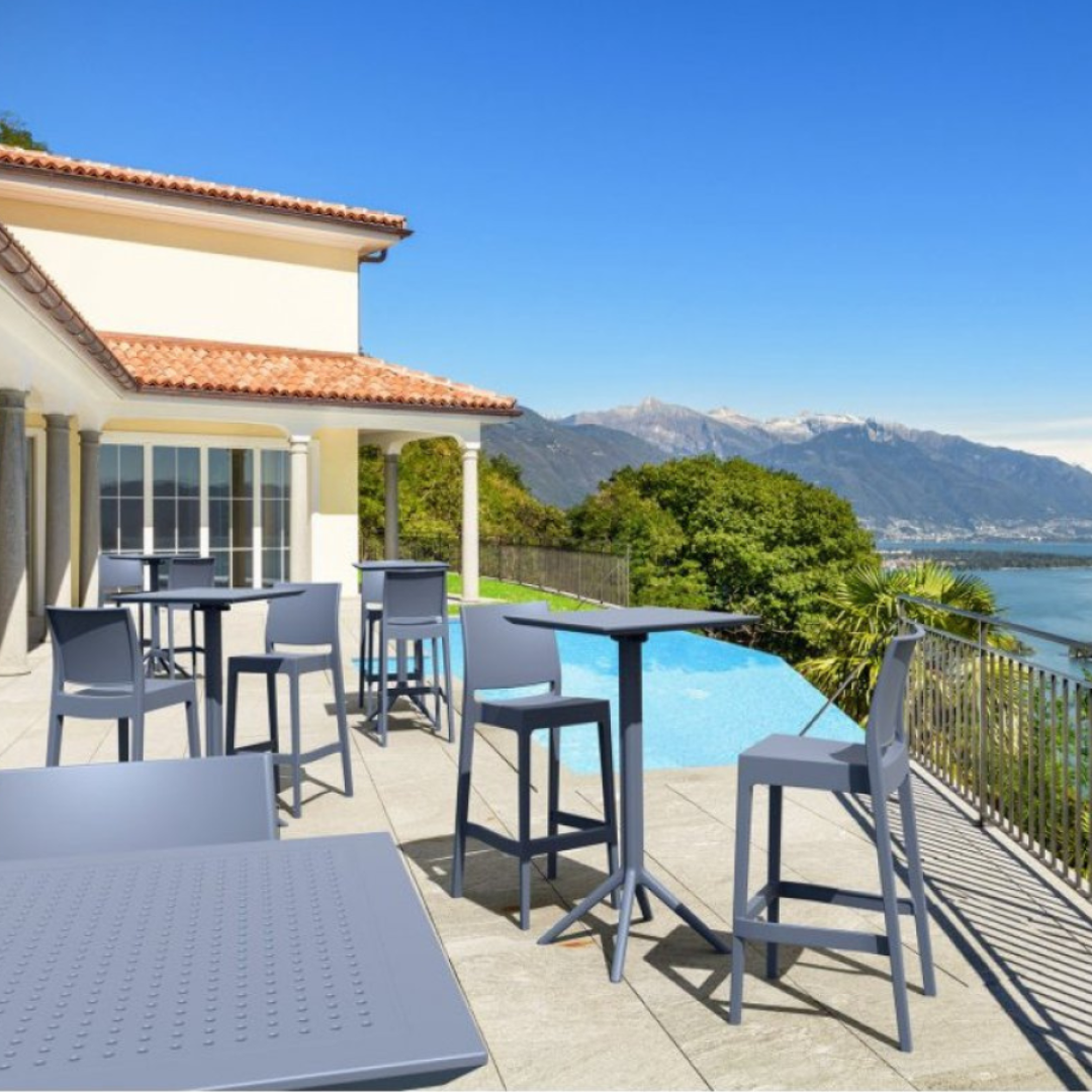Židle MAYA BAR je vyrobena z kvalitního polypropylenu vyztuženého skleněnými vlákny, který zaručuje pevnost a dlouhou životnost. Moderní technologie výroby mu dodává čistý design v neutrálních barevných tónech. Židle je vhodná pro použití v interiéru i exteriéru.