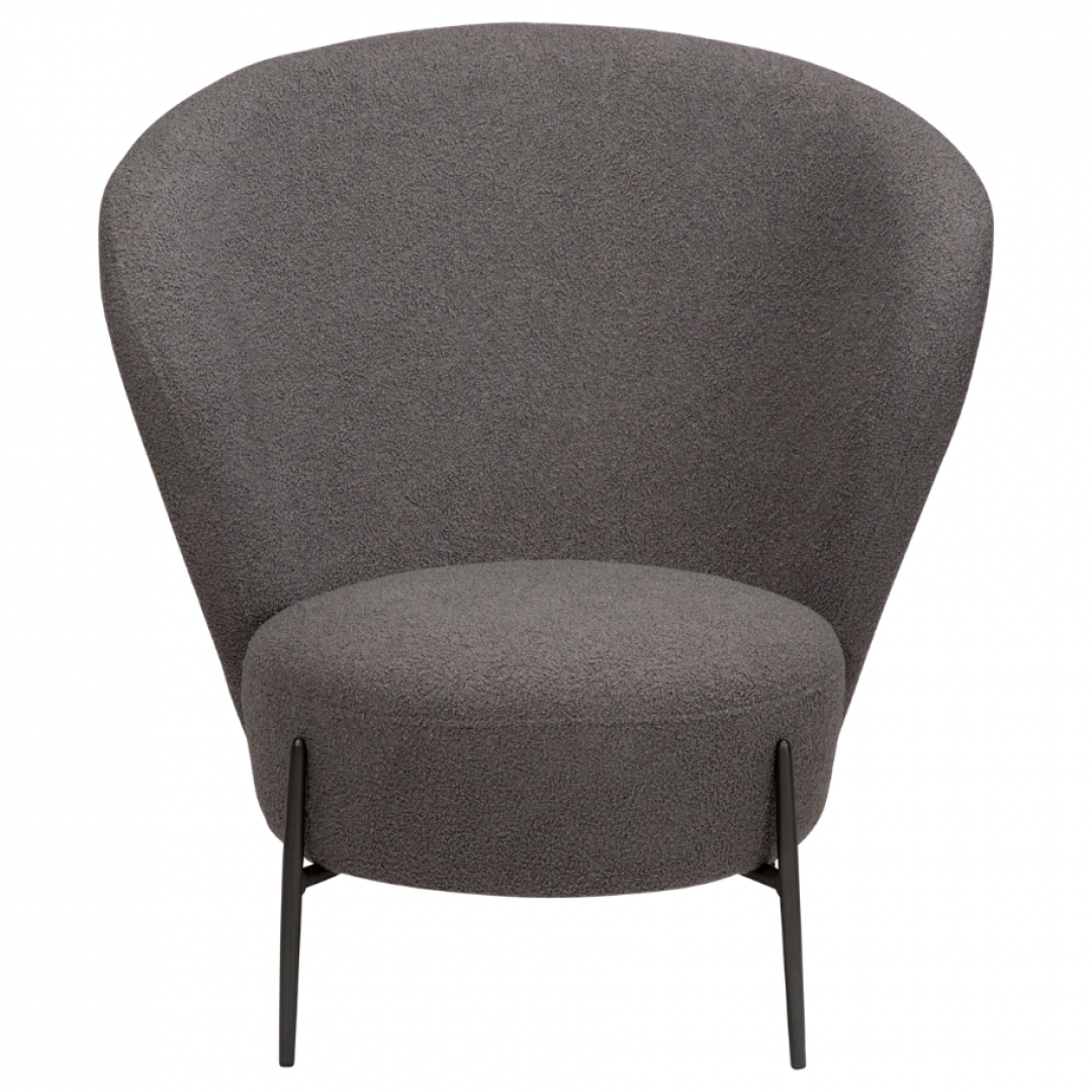 Kovové kónické nohy se mírně rozšiřují, čímž dodávají designu zajímavý prvek navíc. Nohy křesla jsou upevněny na kovovém rámu. Sedací část s opěrkou jsou očalouněna v odolné tkanině.
