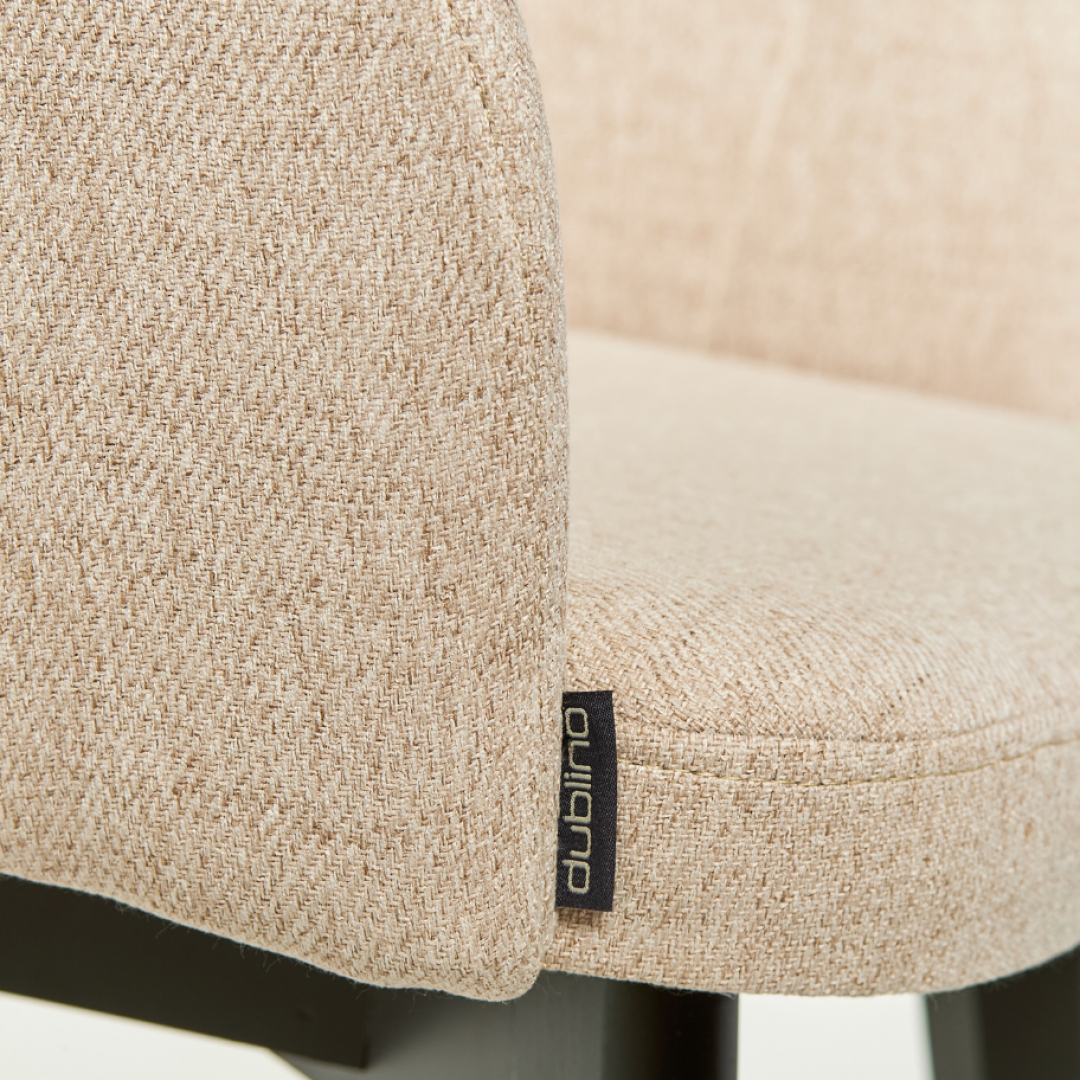 Pohodlná dřevěná židle s čalouněným sedákem a zádovou opěrkou. Nádherný moderní styl, který je vhodný do restaurace či kavárny bude v každém provozu působit velmi příjemně. Židle je buková a je mořená v černé barvě. Čalouněná část židle je potažena tkaninou v béžové barvě.