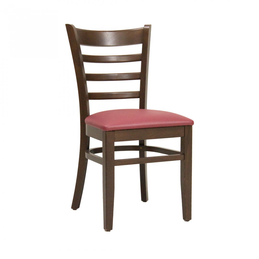 Masivní židle ve více odstínech moření s možností výběru čalounění podsedáku, zhotovená z bukového nebo dubového dřeva, vhodná zejména pro HoReCa segment