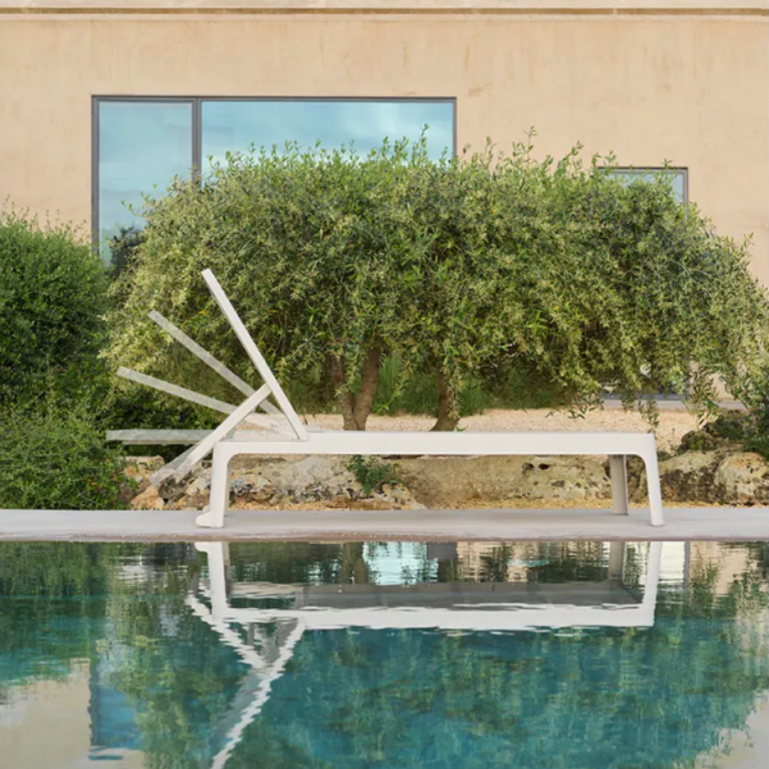 Designové lehátko je vyrobeno z odolného polypropylenu, který je ošetřen proti UV záření, aby byla zachována stálobarevnost. Díky tomu je lehátko ideální pro venkovní bary u bazénu nebo jen pro relaxaci s knihou na terase. Pohodlné lehátko lze nastavit do čtyř různých poloh a je stohovatelná.