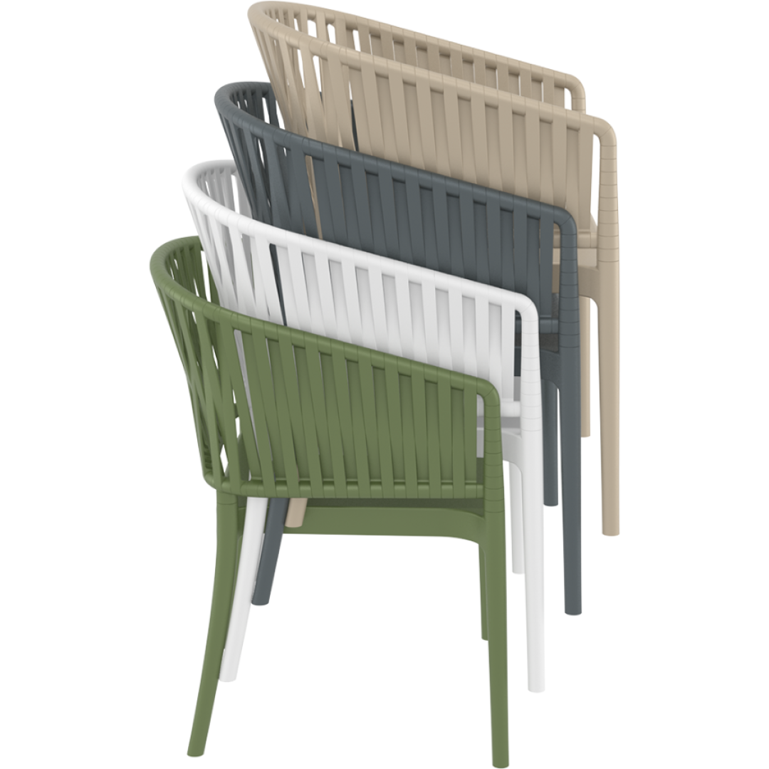 Stohovatelná židle PORTOFINO je vyrobena z kvalitního polypropylenu vyztuženého skleněnými vlákny, který zaručuje pevnost a dlouhou životnost. Moderní technologie výroby mu dodává čistý design v neutrálních barevných tónech. Křeslo je vhodné pro použití v interiéru i exteriéru.