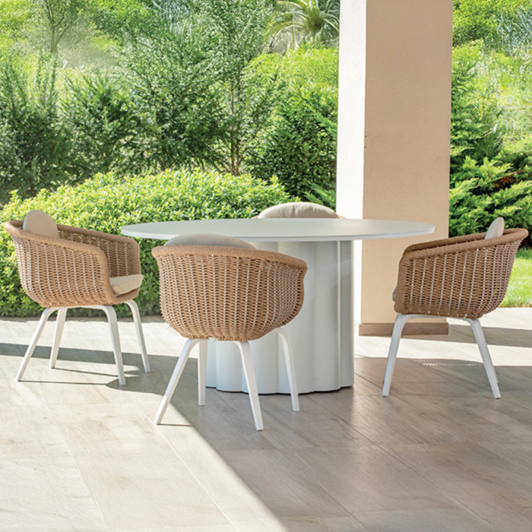 BARBUDA je jídelní stůl s čistým a výrazným designem, ideální pro vybavení venkovních prostor. Celá konstrukce je vyrobena ze svařovaného hliníku.