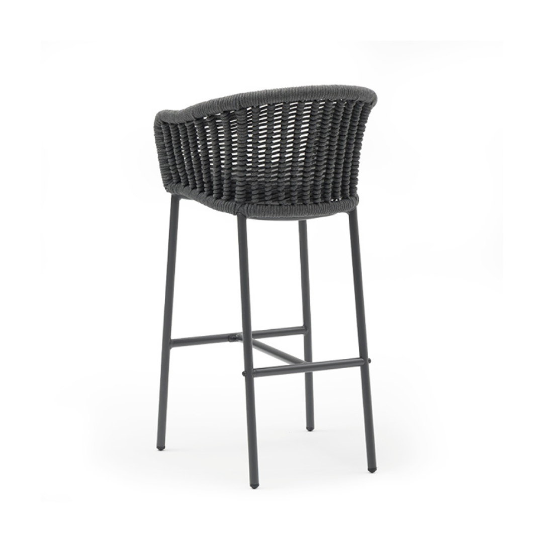 Barová židle do exteriéru s hliníkovou konstrukcí.