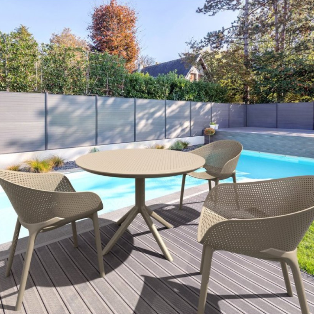Praktický stůl SKY je vyroben z kvalitního polypropylenu vyztuženého skleněnými vlákny, který zaručuje pevnost a dlouhou životnost. Moderní technologie výroby mu dodává čistý design v neutrálních barevných tónech. Stůl je vhodný pro použití v interiéru i exteriéru.